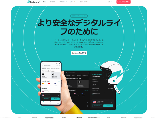 「Surfshark」はこの記事で紹介するVPNの中では最も安価に利用できるVPNサービスです。