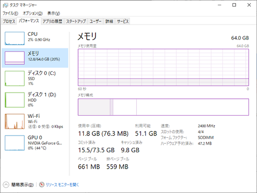 After Effectsの動画編集には最低でも16GB、After Effects以外のソフトウェアを同時に起動する場合には、32GBのメモリを積んでおくことをおすすめします。